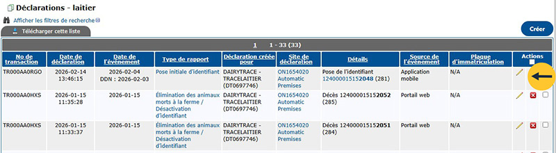Peu importe le type d’événement – de la pose initiale de l’identifiant aux déplacements d’animaux – vous pouvez déclarer plusieurs animaux à la fois.