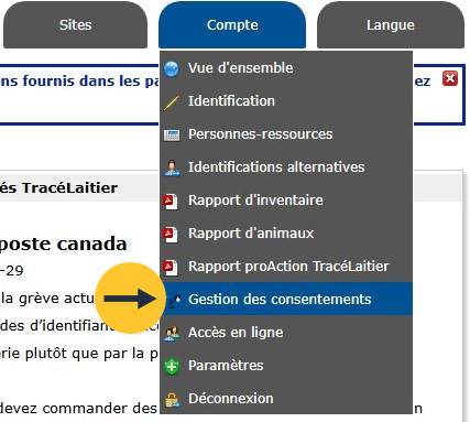2. Mettre votre compte à jour dans le portail TracéLaitier. Voici comment :