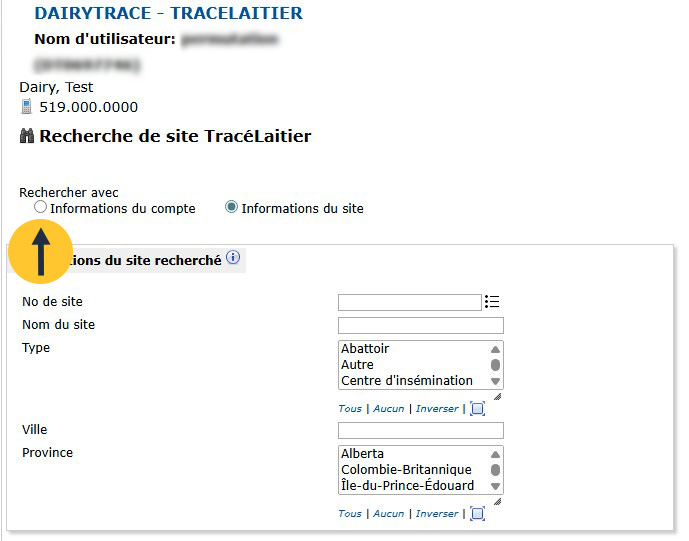 Vous pouvez autoriser l’inclusion de votre no de site dans l’outil Recherche de site TracéLaitier afin qu’il soit consultable par les autres utilisateurs.