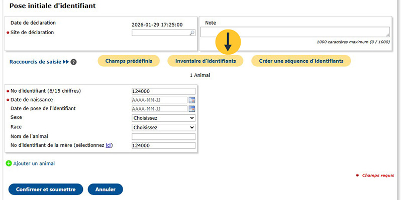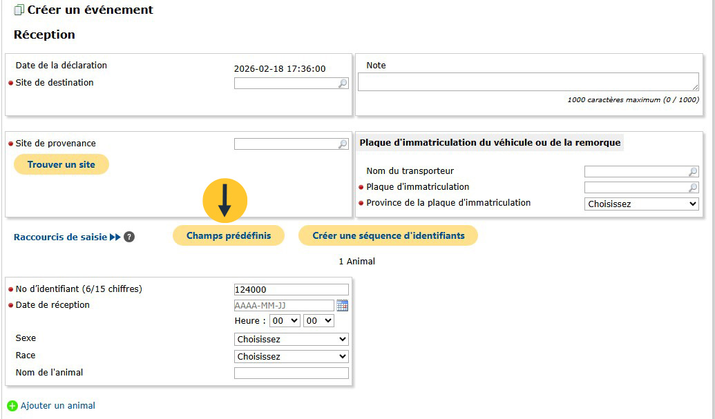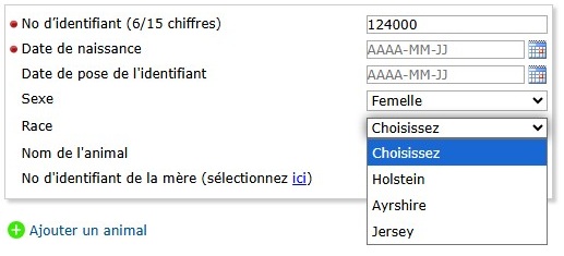 Cela vous permettra d’entrer la date de l’événement, le sexe et la race de tous les animaux.