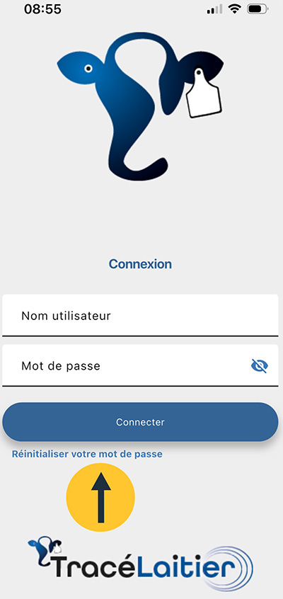 Si votre téléphone est connecté à Internet, le site Web du portail TracéLaitier s’ouvrira automatiquement. Suivez les instructions pour réinitialiser votre mot de passe via le portail.