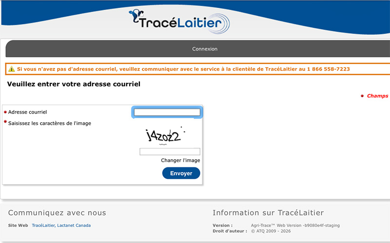 Connectez-vous à votre compte TracéLaitier (https://portail.tracelaitier.ca).