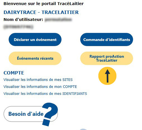 À partir de la page d’accueil, cliquez sur Rapport proAction TracéLaitier.