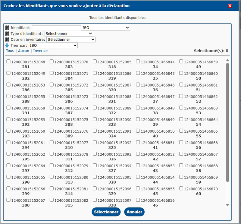 Vous verrez une liste de tous les identifiants émis dans votre compte. Sélectionnez le ou les identifiants que vous voulez utiliser pour cette déclaration.